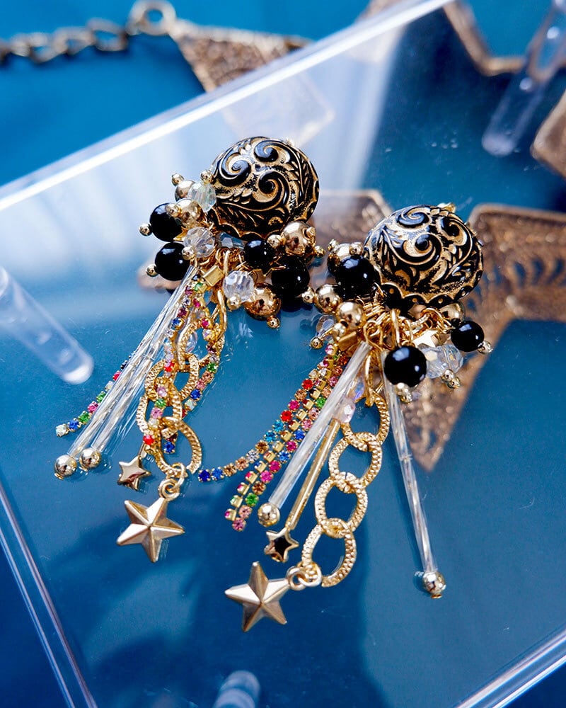 【ピアス/イヤリング】祝福のシャンパンゴールド(ブラックレインボー)