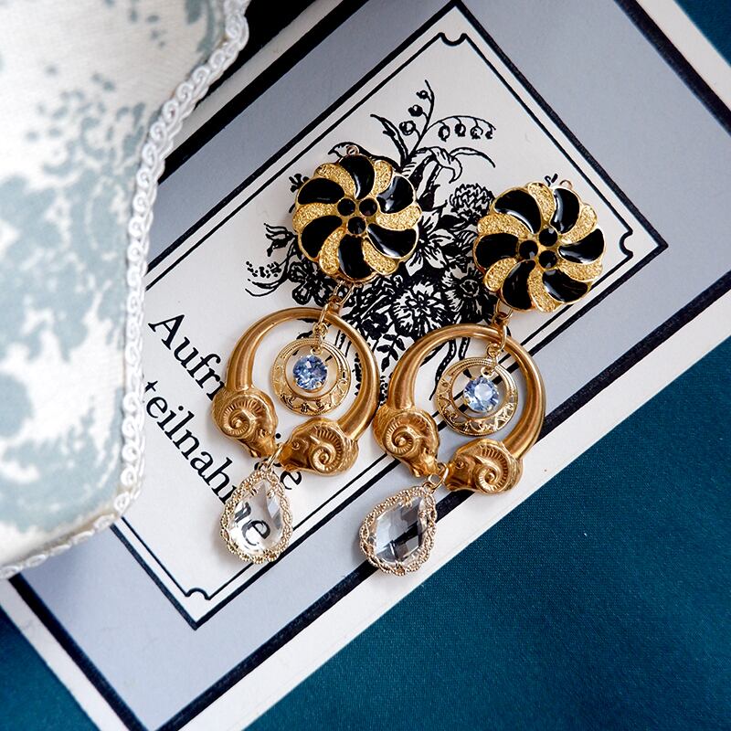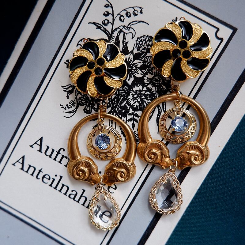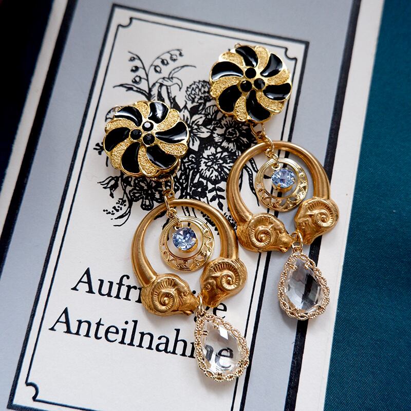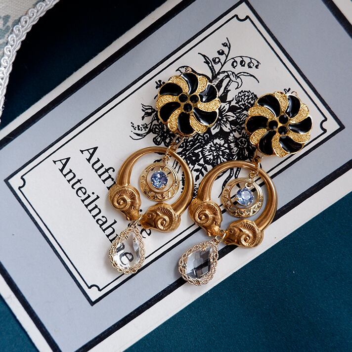 古代の星環をイメージさせるリングの中に、対となる双羊(そうよう)のモチーフをあしらった、神秘と力を秘めたピアス/イヤリング。