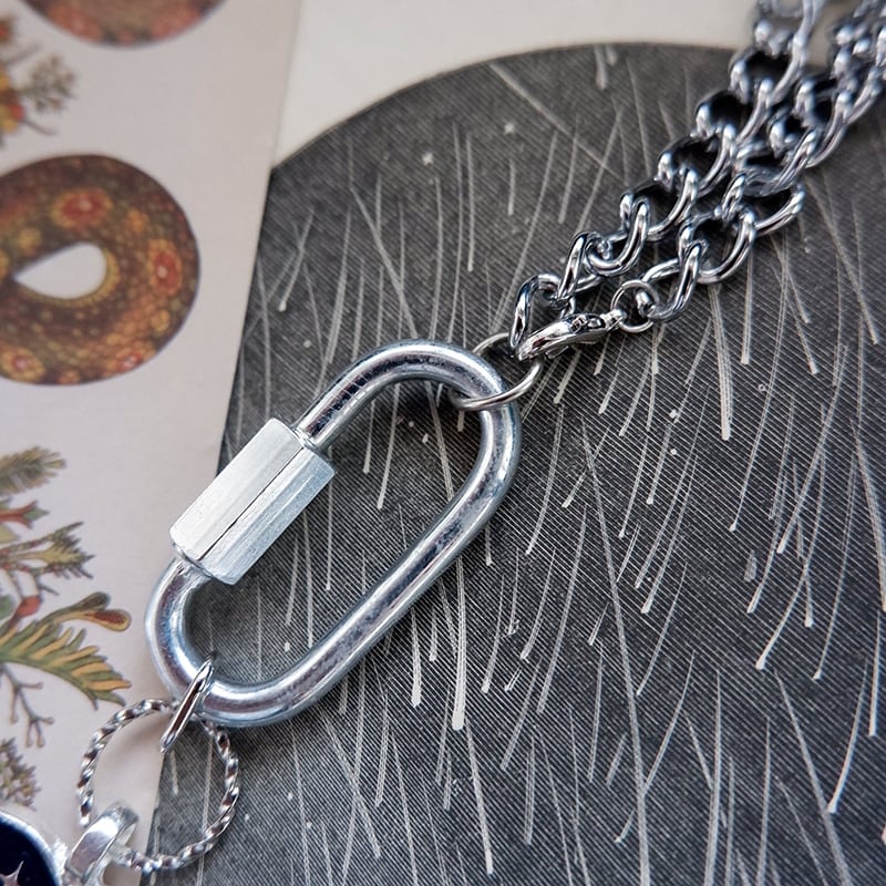 シルバーチェーンに輝く、神秘的なハートペンダント。