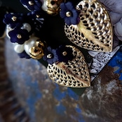 黒のトップパーツに、ゴールドのボタンを組み合わせた上品なデザイン。