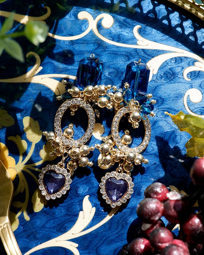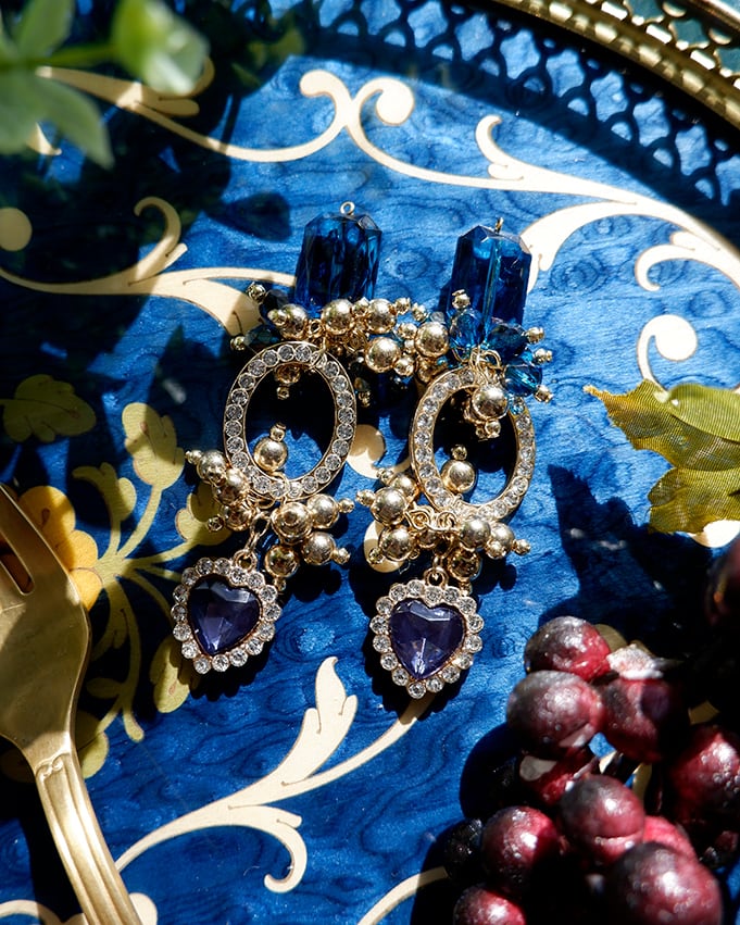 光を受けるたびに深い青が揺らめき、耳元を印象的に彩ります。