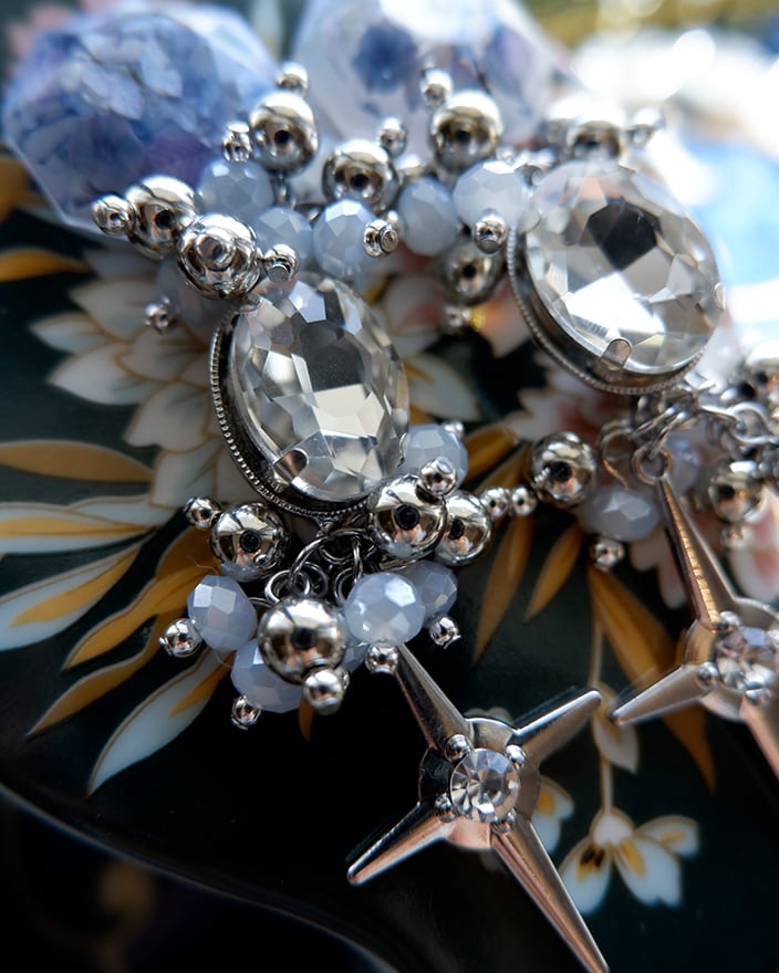 淡いブルーとシルバーのコントラストが、冬の朝の光を閉じ込めたようにきらめきます。