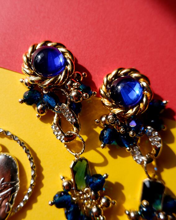 揺れる度に煌めくクリスタルやメタルパーツが顔まわりを華やかに見せ、特別な日のコーディネートにも相性抜群。