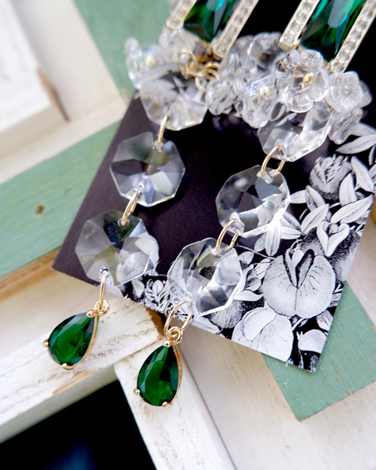 深みのあるエメラルドグリーンと静かにきらめくクリスタルを重ねた