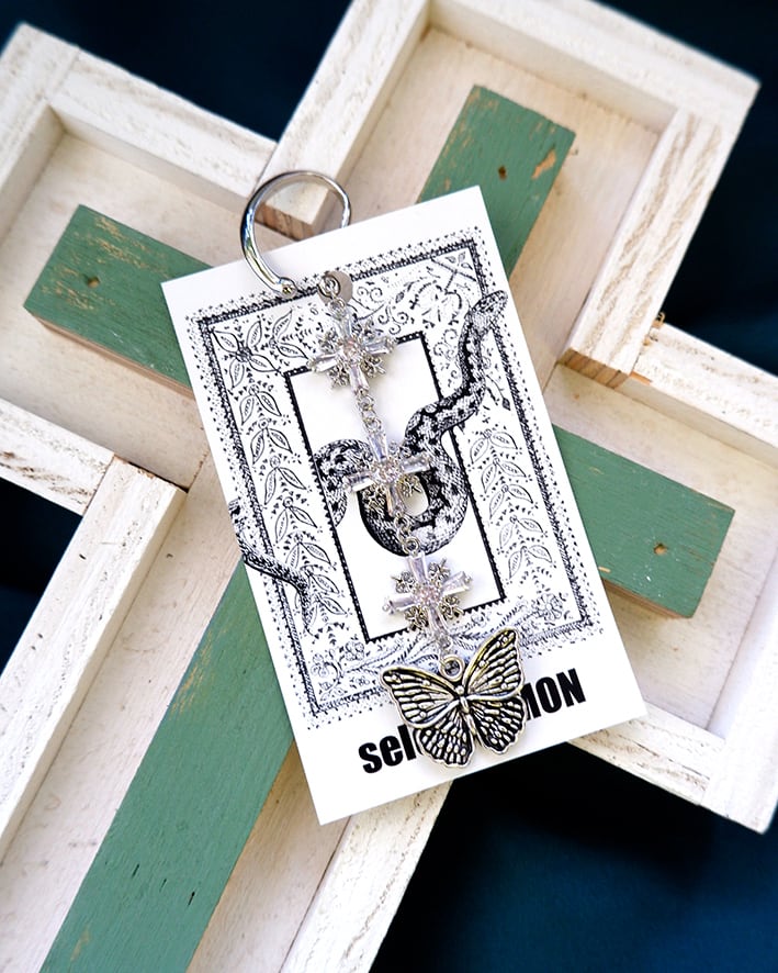 静かに揺れる十字は「信仰」と「祈り」蝶は「変容」と「再生」