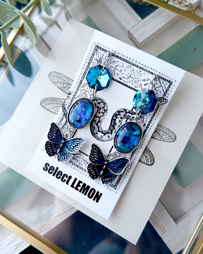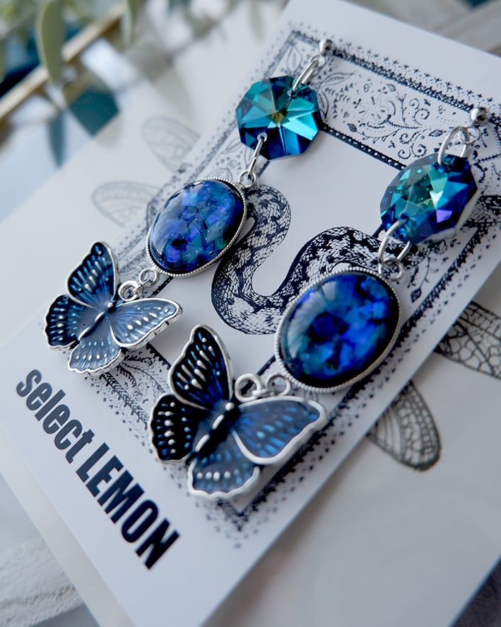 光の加減で移り変わる幻想的なブルーが心を奪う耳飾り。