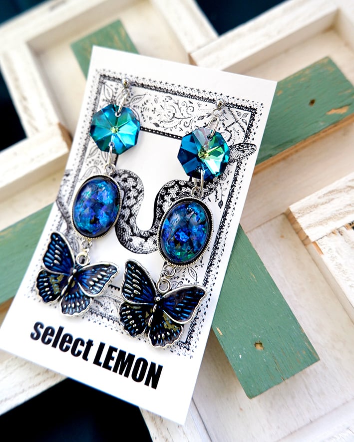 優雅に舞う青い蝶のチャームが女性らしい可憐さと自由な魅力を添えてくれます。