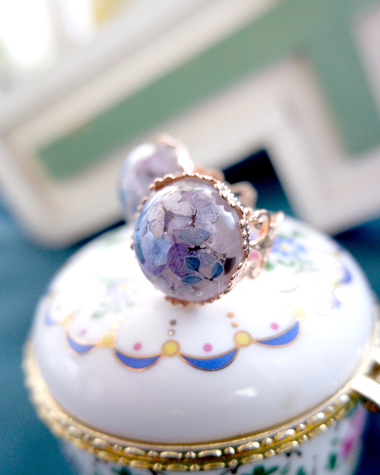 ドームの中にはモルフォ蝶と花びらが贅沢に詰め込まれています。