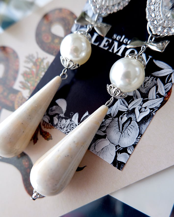 歩くたびにパールとドロップがやさしく揺れ、