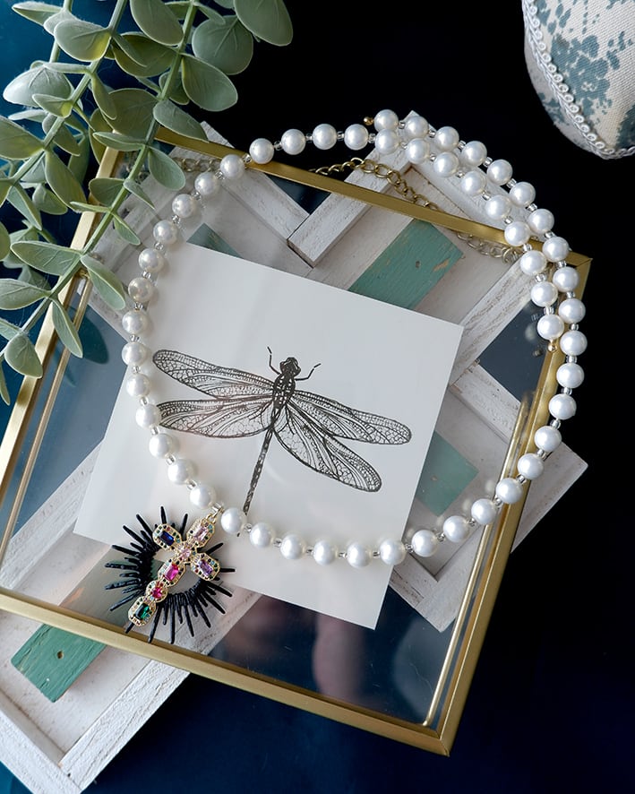 【チョーカー/ネックレス】彩石クロスとパールのネックレス