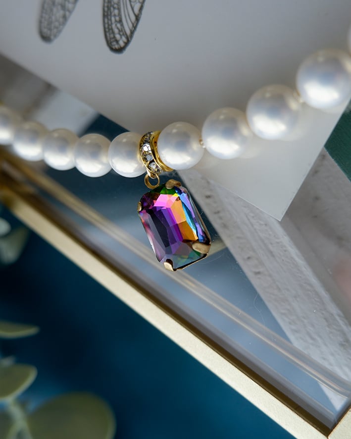 パールの上品さとカラフルなビジューのきらめきを楽しめる、