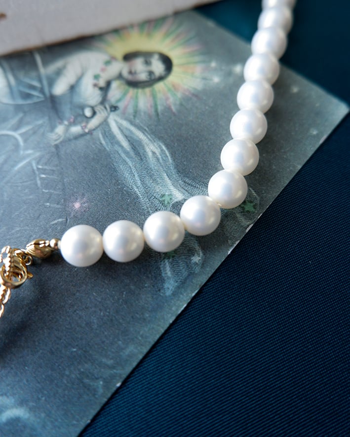 上品なパールネックレスに、