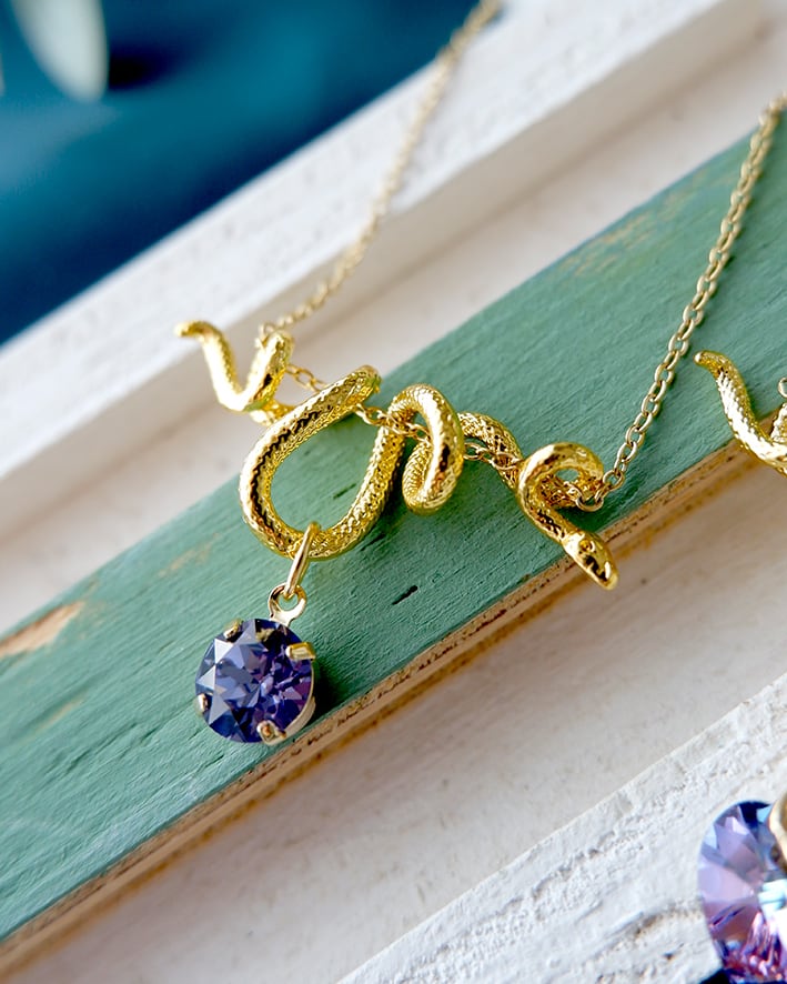 蛇のしなやかなラインが首元にアクセントを与え、