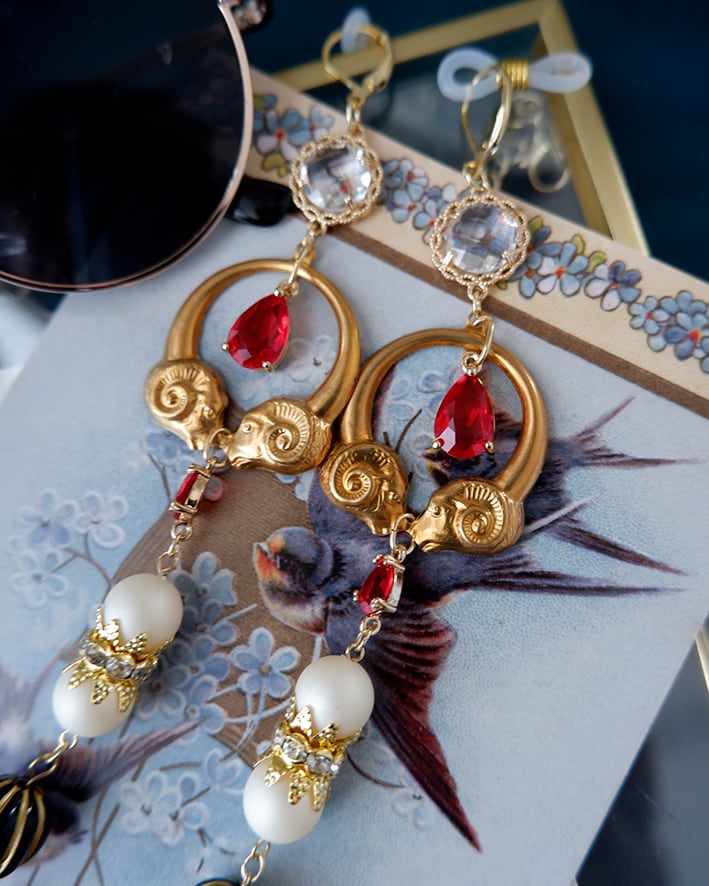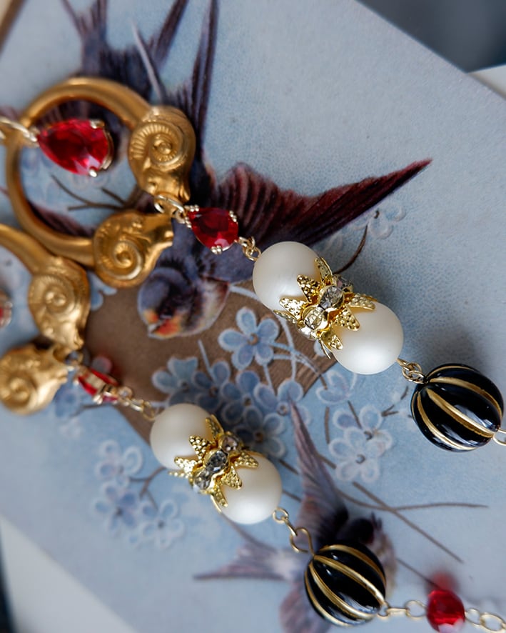 様々な美しいビーズやビジューで色どり豊かに顔周りを飾ります。