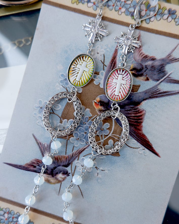 様々な美しいビーズやビジューで色どり豊かに顔周りを飾ります。