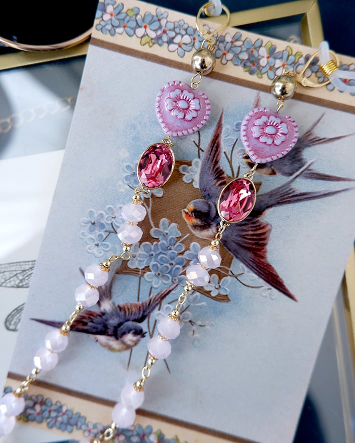 様々な美しいビーズやビジューで色どり豊かに顔周りを飾ります。