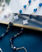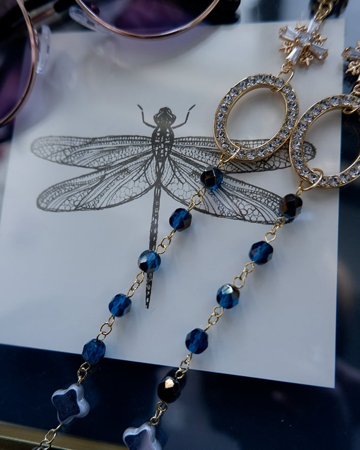 様々な美しいビーズやビジューで色どり豊かに顔周りを飾ります。