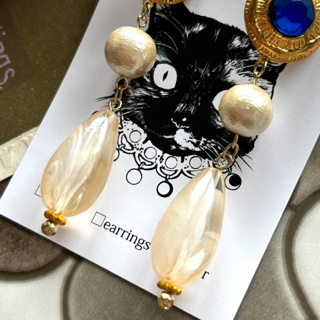 ドロップビーズはクリーム色で、よく見るとマーブル模様が美しいです。
