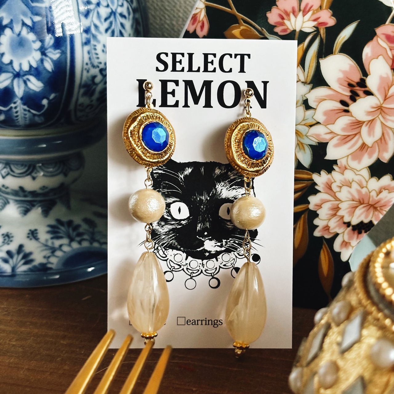 宝石みたいなアメリカのビンテージボタンを使用した美しい耳飾りです。
