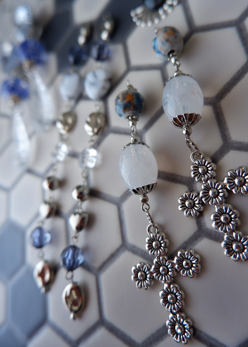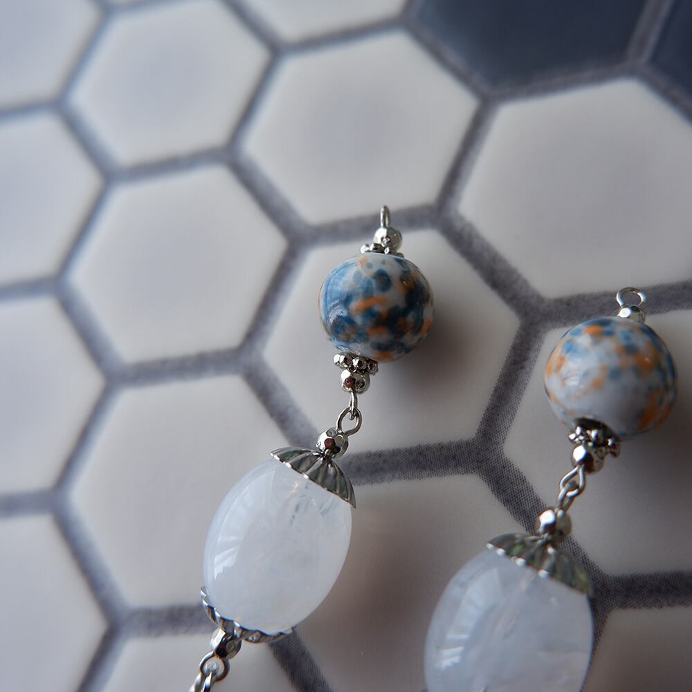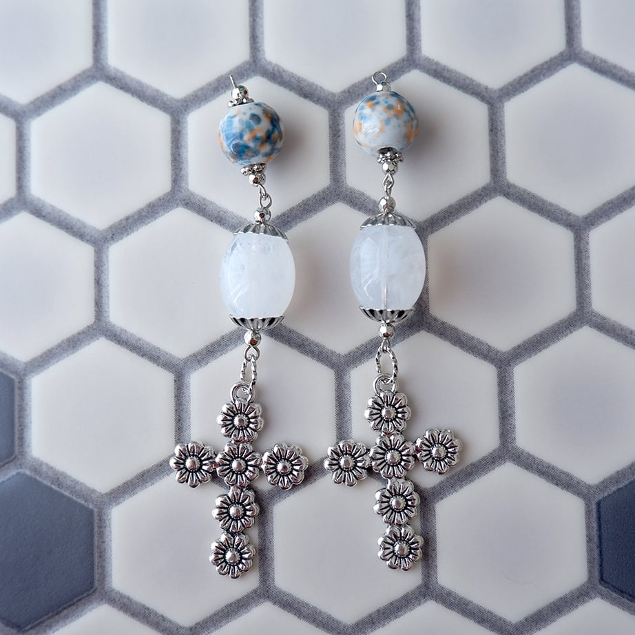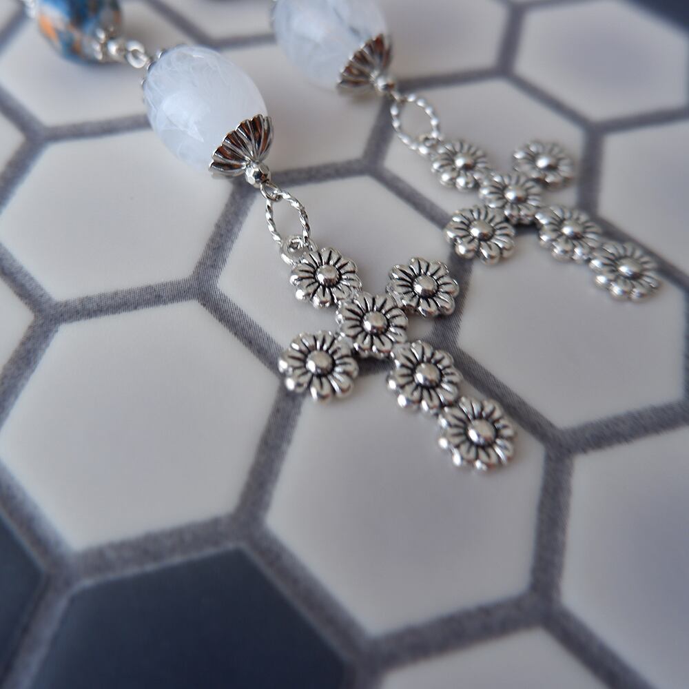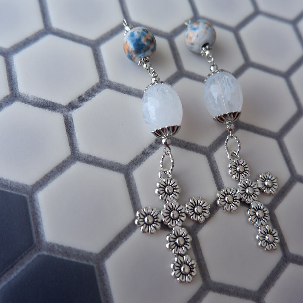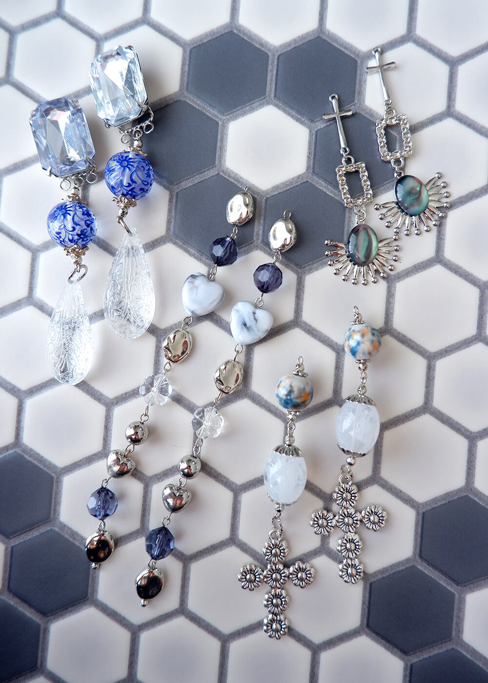 氷のように澄んだ透明感と、クロスデザインが織りなすクールで洗練された美しさが魅力的です。クロスのモチーフが持つ神秘的なシンボリズムと、まるで氷の結晶を思わせるような透明感が、あなたのスタイルに洗練された輝きをプラスします。