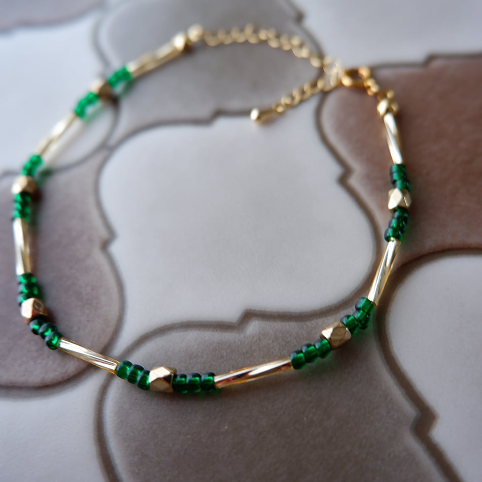 【ブレスレット】異国の宝石のかけらのブレスレット(グリーンゴールド)